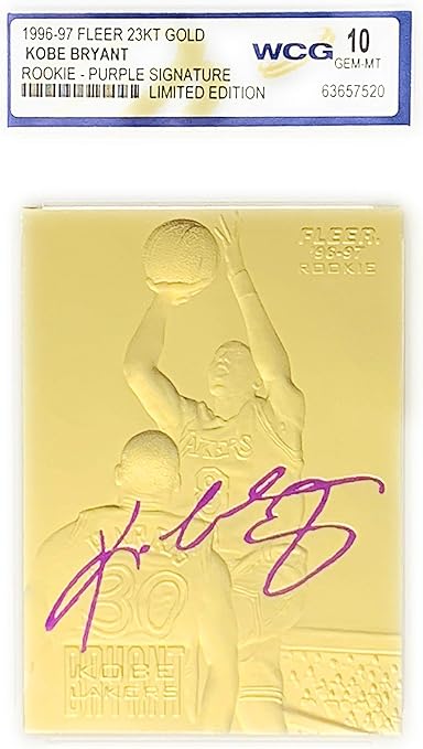 Amazon Com Kobe Bryant 1996 97 Fleer Limited Edition Purple Signature 23 Kt Gold Rookie Card Sports Outdoors